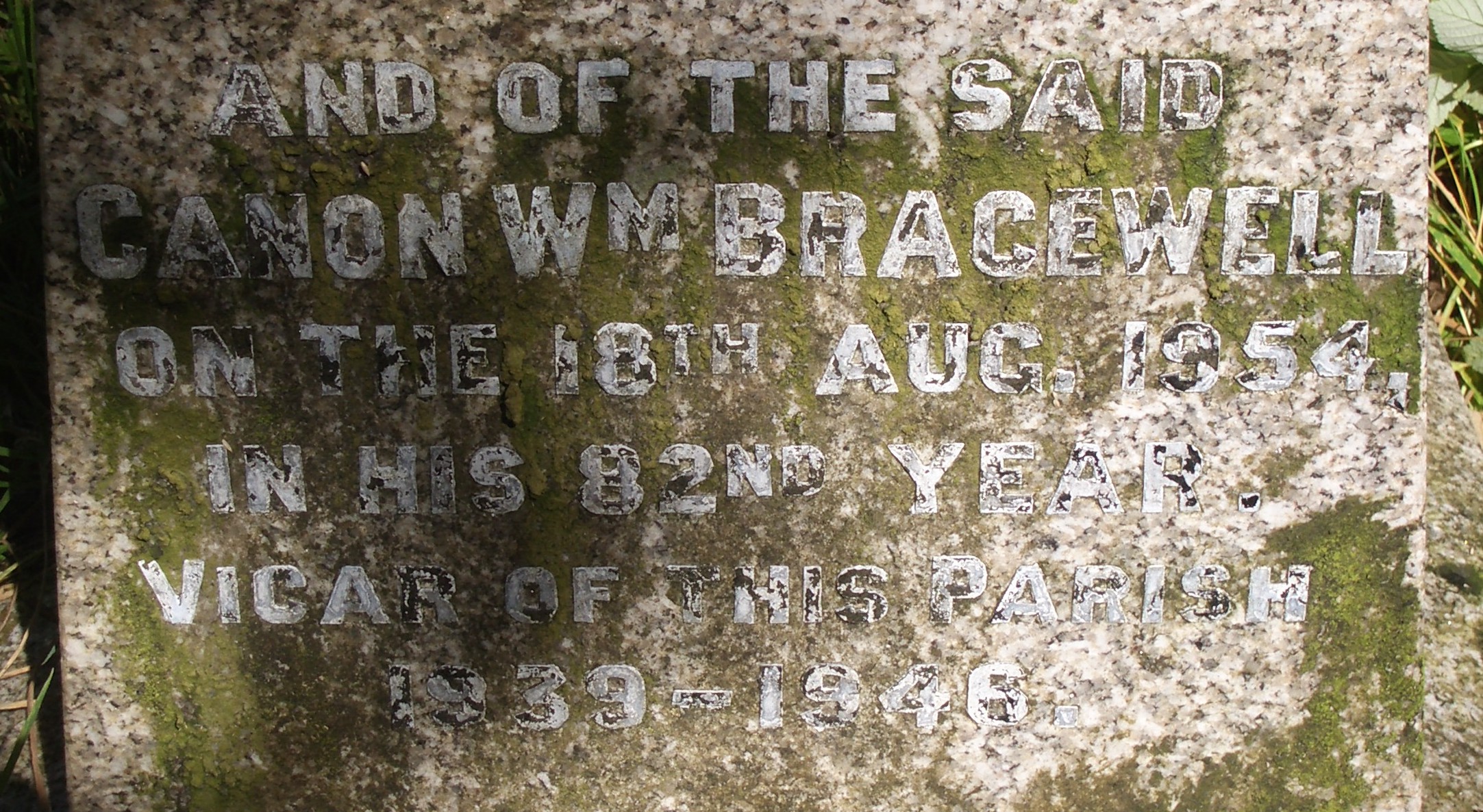 Canon William Bracewell 1872 son of William Metcalf Bracewell and Elizabeth, grave in Bracewell churchyard, next to family'vault' |