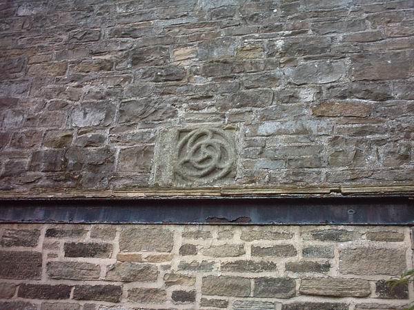 Stone built into gable end of Throstle Nest Cottage, Old Road, Thornton