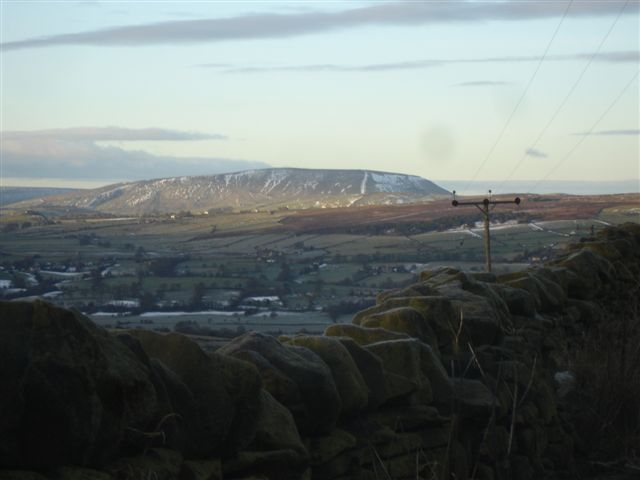 This is a view of Pendle Hill from the top of stonybank, by stonybank farm, looking over Earby |
