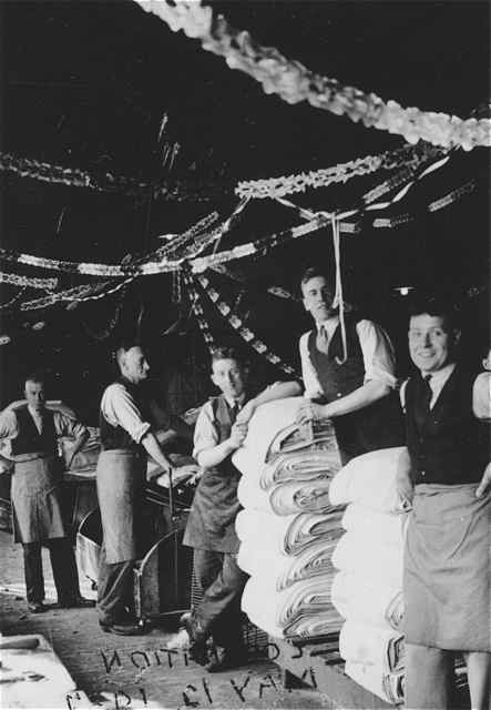 Clothlooking Room on Coronation Day....note the long wheeled bins for receiving the Inspected cloth (still in use over 20 years later!) |