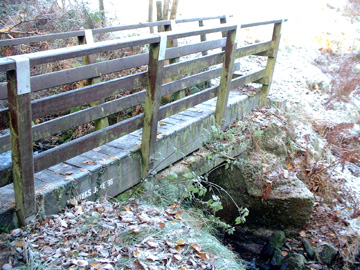 This is at the bottom of Claude Clough. Look under the modern footbridge.