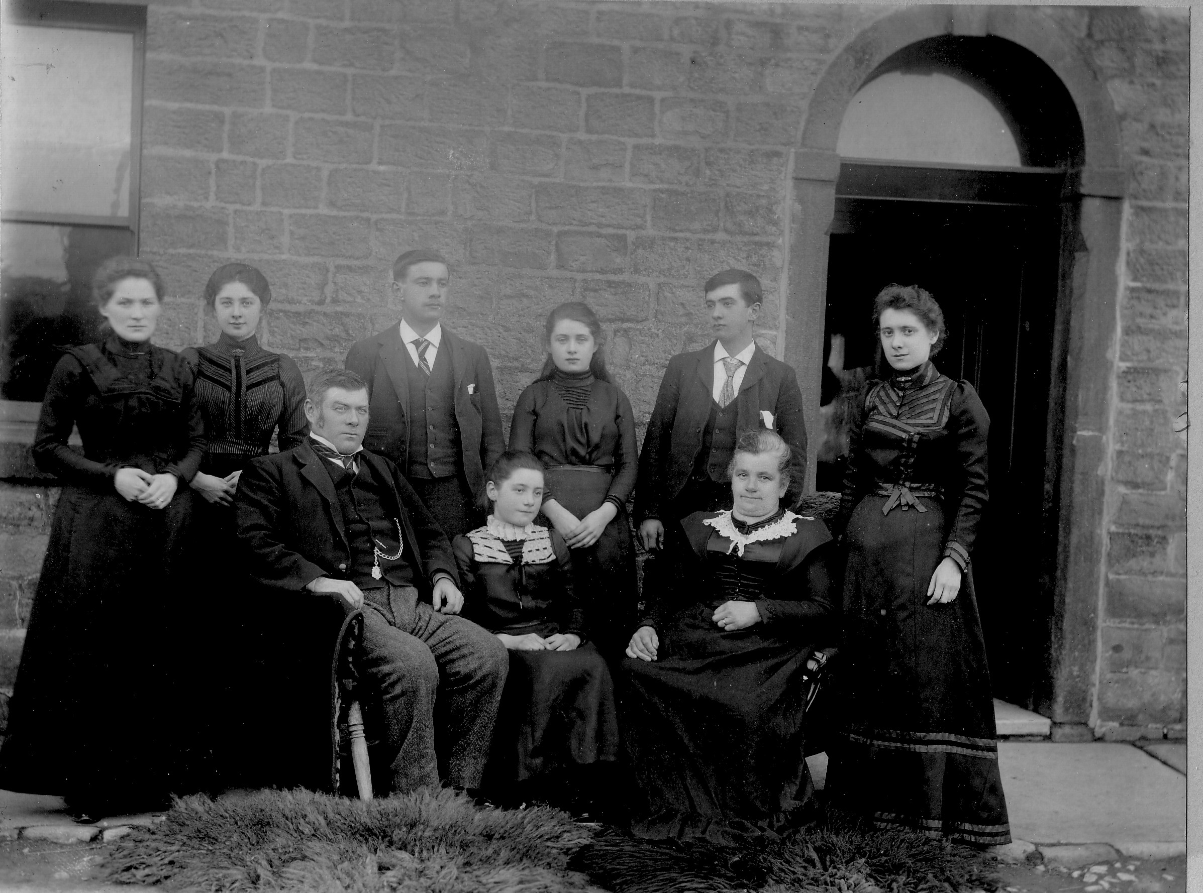 (Left to right) Mary Elizabeth (1877), Martha (1883), George (1882), Margaret (1886), Edward (1885), Ellen (1880), Jacob (1855), Annie (1888), Margaret (1850)