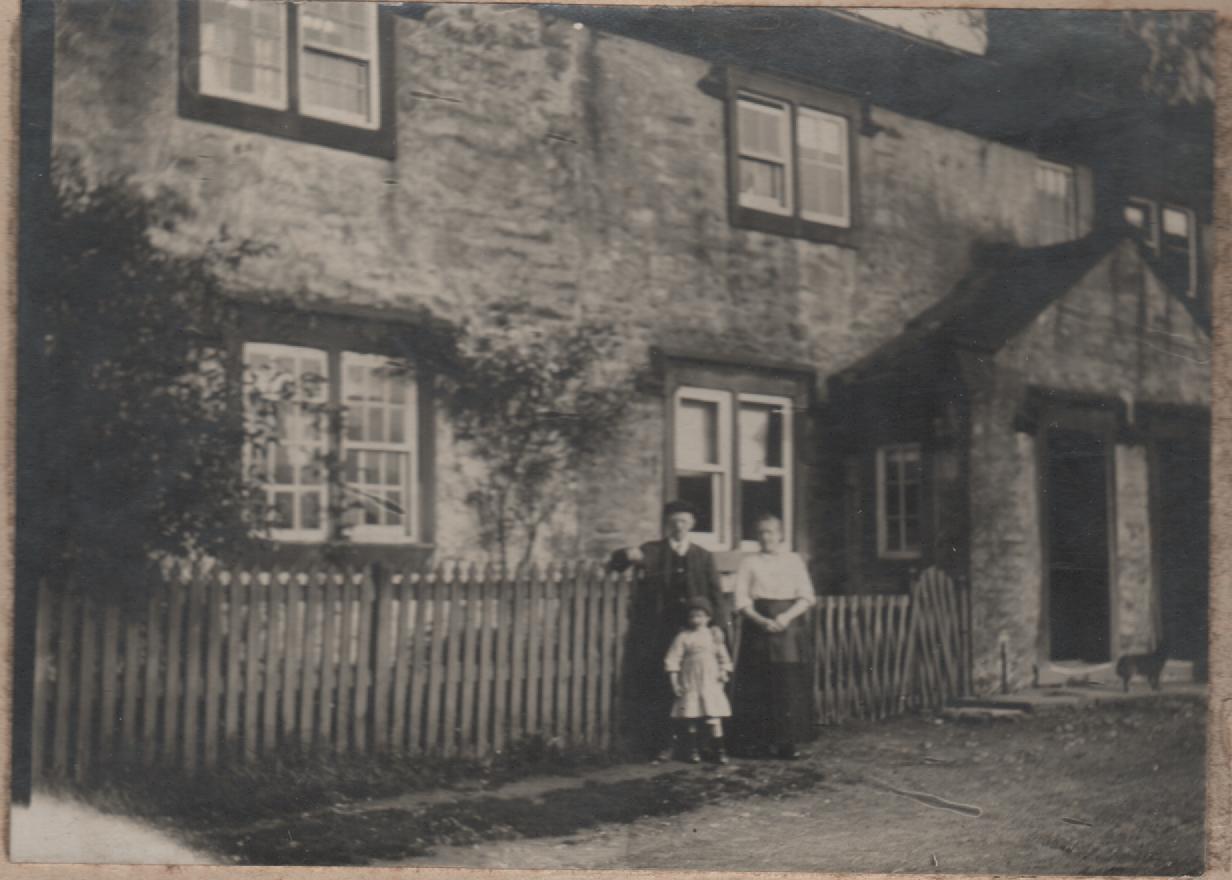 The little girl is my mother Irene Bateson aged 4. She lived in the middle cottage. She is with her grandad Joseph Bateson and his third wife Elizabeth (nee Astin). They lived in the first cottage. Irene's dog 'Fan' is near the porch.