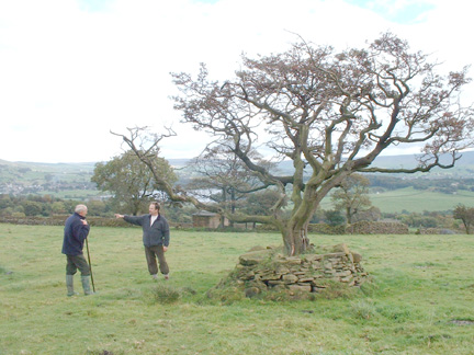 L to R. Andrew Turner (owner) Barrowford John and the thorn tree planted on a walled mound.